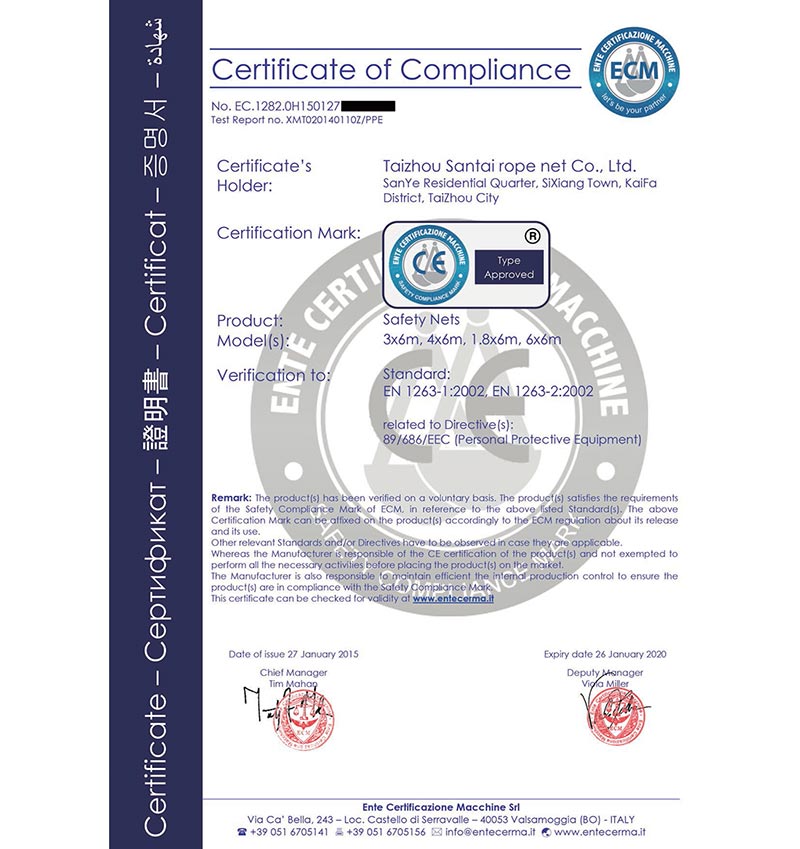 泰州市三泰健康科技有限公司(原 泰州市三泰繩網有限公司),本公司成立于1988年12月22日,至今近30年的生產歷程。多年來的生產經驗,加之我們不斷的創新,已經建設成為集研制、開發、生產、銷售為一體的龍頭企業。公司生產線由捻線車間、制繩車間、織網車間、織帶車間、織(絞)繩車間、安全網組裝車間、安全帶組裝車間、檢驗室等組成。企業現有職工155人,企業管理人員6名,市場研發人員8名,專業質檢人員2名,......